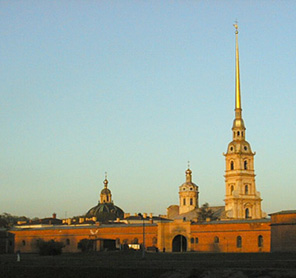 This stronghold was built to secure Russia's hold on the Neva delta and is the seed of this famous city of now more than 5 million residents. Native villagers were forced to labor from sun up to sun down on Zayachiy (Hare) Island in order to construct the Fortress within a seven month period during 1703. During 1718 the Fortress was utilized as a prison, known, ironically as the "Russian Bastile." Today the island is a favorite with sunbathers, and in the winter with the "walruses", people who swim in the frigid waters. Inside the cathedral which is the spire you see here, you will find the final resting place for several former rulers.